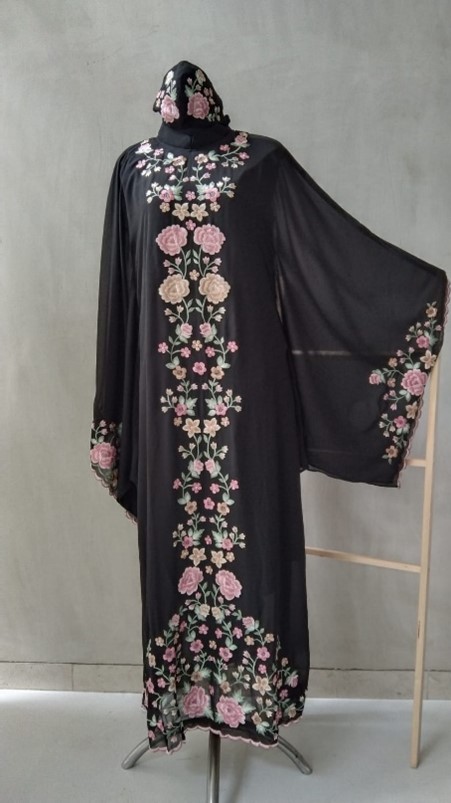 Kaftan ini menggunakan bahan Ceruty dengan bordir manual motif bunga. Ukuran badan bisa dipesan sesuai permintaan (XXS-XXXXL) dengan panjang standard 140 cm atau sesuai keinginan. Gamis didesain dengan motif cantik dan exclusive sehingga terlihat elegan. Kaftan ini sdh dilapisi dengan kain Hero. Kaftan ini juga dilengkapi dengan Masker Bordir